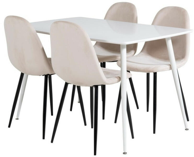 Lola 4+1 étkező garnitúra bézs-fehérElegáns étkezőgarnitúra modern otthonokba A Leziter márka Lola 4+1 étkezőgarnitúrája tökéletes választás modern lakásokba, éttermekbe és stílusos irodai konyhákba egyaránt. A garnitúra 4 db székből és 1 db asztalból, a népszerű Silla étkezőszék és a Yorki standard étkezőasztal harmonikus kombinációjából áll, egyesítve a