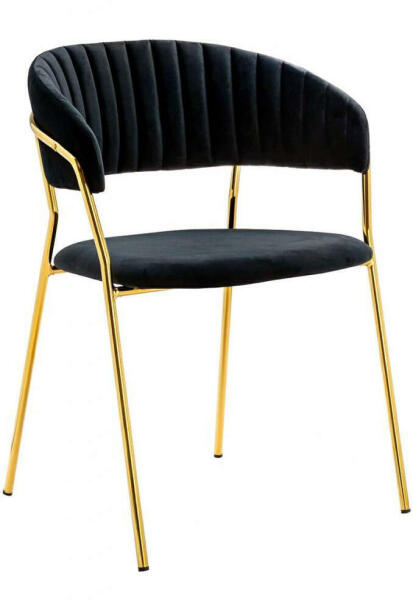 Margo szék fekete színben. Ülés és háttámla puha és kellemes tapintású velúrral kárpitozott. Szerkezet aranyszínű, fényes fém. A Margo a divatos szövet és az arany tökéletes kombinációja. A háttámlán található függőleges varrás elegánsabbá teszi a széket. A modern és klasszikus enteriőrökhöz ideálisan illeszkedő szék. Méretek: Magasság 78 cm / szélesség