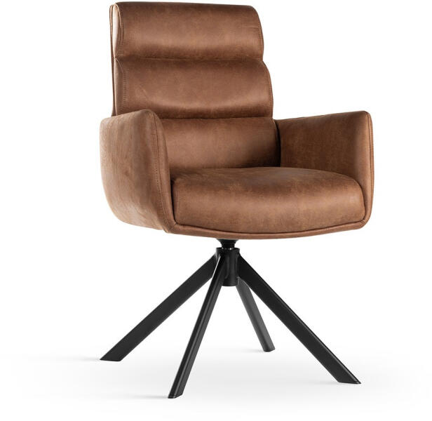 Modern forgószék prémium minőségű tevebarna kárpitozással és stílusos fekete csillag alakú talppal. Ergonomikus kialakítása és párnázott karfái maximális kényelmet biztosítanak. Elegáns Kényelem Modern DizájnnalA CIPHER forgószék tökéletes választás azoknak, akik értékelik az időtlen dizájnt és a kényelmet. A szék tevebarna színű, puha kárpitozása és ergono