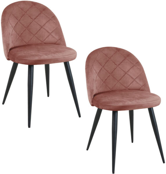 Elegáns, steppelt kárpitozású étkezőszék páros bársony huzattal és fekete fémlábakkal. Modern és időtlen dizájn, amely tökéletes kényelmet biztosít az étkezőben vagy a nappaliban. Luxus és kényelem modern köntösbenA SJ. 077 étkezőszék páros a modern otthonok elegáns kiegészítője. A puha, rózsaszín bársony kárpitozás és a steppelt háttámla nem csak szemet gy