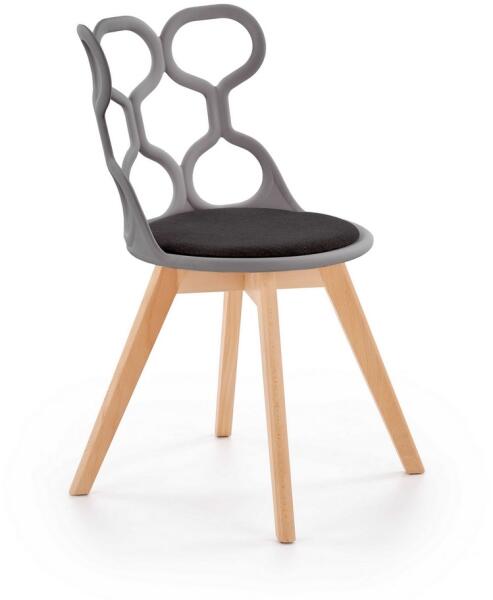 Leopold étkezőszék A modern Leopold étkezőszék otthon és céges étkezőkben és konyhákban is díszíti az étkezőasztalt. Első pillantásra lenyűgözi az eredeti formájú háttámla. Tartós műanyagból készült, aminek karbantartása is egyszerű. A szék ülőrészének érintkező része szürke szövettel van bevonva. A Leopold szék tökéletes stabilitását az erős, tömör