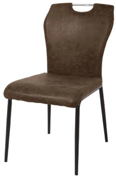 Katalin étkezőszék - elegáns vonalvezetésű, középmagas háttámlás étkezőszék, textilbőr kárpitozással. Mérete: 88x42,5x59 cm, ülőlap mérete 41x45 cm, háttámla magassága 45 cm, terhelhetősége 100 kg.