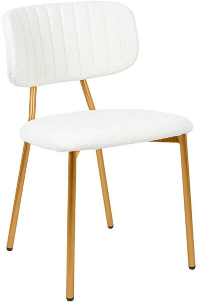 Elegáns Fabiola étkezőszék puha, fehér bouclé kárpitozással és szatén arany fém lábakkal. A modern vonalvezetésű szék tökéletes választás azoknak, akik a kényelmet és a stílust egyaránt fontosnak tartják. Luxus és kényelem modern köntösbenA Fabiola étkezőszék a modern elegancia megtestesítője. A fehér bouclé szövet különleges textúrája és a szatén arany sz