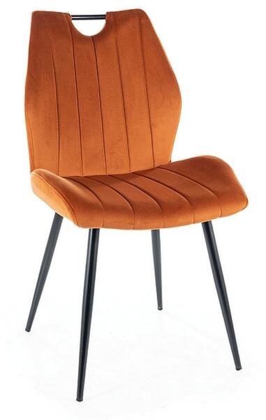 Arco Velvet étkezőszék Minden modern berendezésű étkezőben található egy megfelelő szék. A szék bársonyszövettel van bevonva, ami kellemes. megérinteni. A szokatlan formájú ülés modern megjelenést kölcsönöz a széknek, és maximális kényelmet biztosít használat közben. A talp szerkezete fémből készült. A szék ezértmerev és stabil, a szék maximális teherbírása