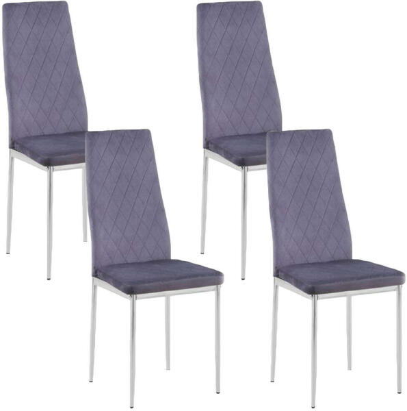 GOLDFAN Székek Készlet 4 darab, Puha Párnázott Bársonyszékek Króm LábakkalA termékről: Teljes méretek: Székek: 43x42x98 cm (Hossz x Szélesség x Magasság)Alkalmazás: Tökéletes 4 tagú család számára. Használható étkezőben, nappaliban. Könnyen illeszthető a legtöbb dekorációs stílushoz. Könnyű összeszerelés: Részleges összeszerelés szükséges. Minden tartozék