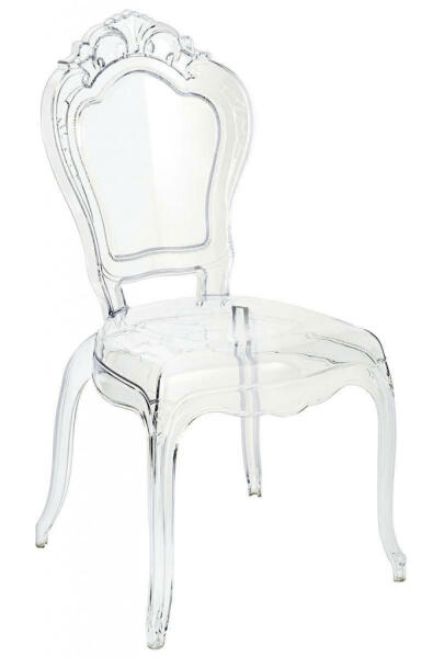 Elegáns és modern King átlátszó szék, amely tökéletesen ötvözi a klasszikus barokk vonalakat a kortárs dizájnnal. A tartós polikarbonátból készült szék könnyű és strapabíró, miközben az átlátszó kialakítás optikailag nem foglal helyet a térben. Időtlen elegancia modern köntösbenA King átlátszó szék a klasszikus barokk stílus modern újraértelmezése. A polika