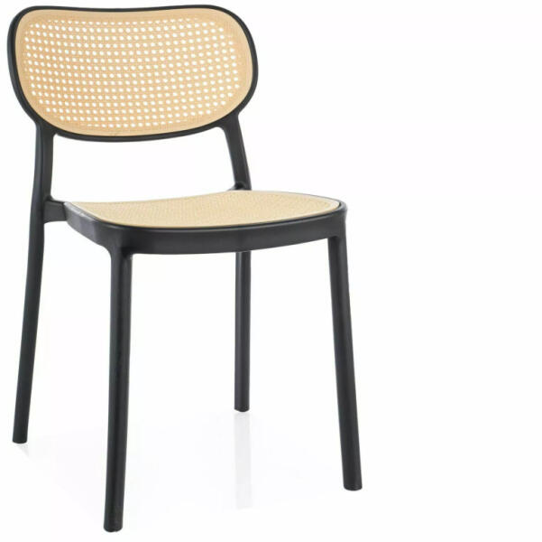 Modern és praktikus PP műanyag szék rattan hatású bézsszínű ülőfelülettel és fekete vázzal. Kiváló választás éttermekbe és kávézókba, köszönhetően a rakásolható kialakításnak és a strapabíró anyaghasználatnak. Modern és praktikus szék rattan hatású kivitelbenA Bali szék egy modern vonalvezetésű, praktikus ülőbútor, amely ötvözi a klasszikus rattan megje