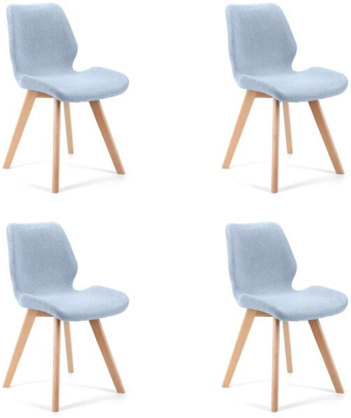 Skandináv stílusú szék falábakkal. Kék szövet szék skandináv stílusban. A szék hálószobába, dolgozószobába, nappaliba, váróterembe vagy irodába illik. A falábaknak köszönhetően nagyon sokoldalúan felhasználható bútordarab. A háttámla és az ülés szövetkárpitozása nagyon kényelmes és puha tapintású. A széket szettben áruljuk - 4 darab egy csomagban. Gyártó: