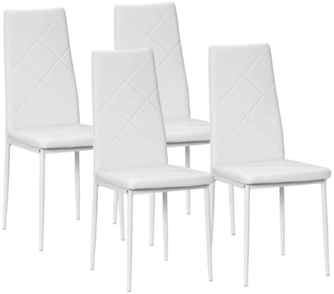 4 db-os konyhai/lakószék készlet, Tomlo, PVC bőr, acél, fehér, 41x50x97 cm, fehér Ez az étkezőszék-készlet ideális megoldás, hogy extra kényelmet és stílust vigyen minden olyan helyiségbe, ahol együtt szeretne étkezni. Tökéletes az étkezőbe, a konyhába vagy akár az erkély étkezőjébe, ez a szett úgy lett kialakítva, hogy 4 személy számára kényelmes ülőhelyet biz