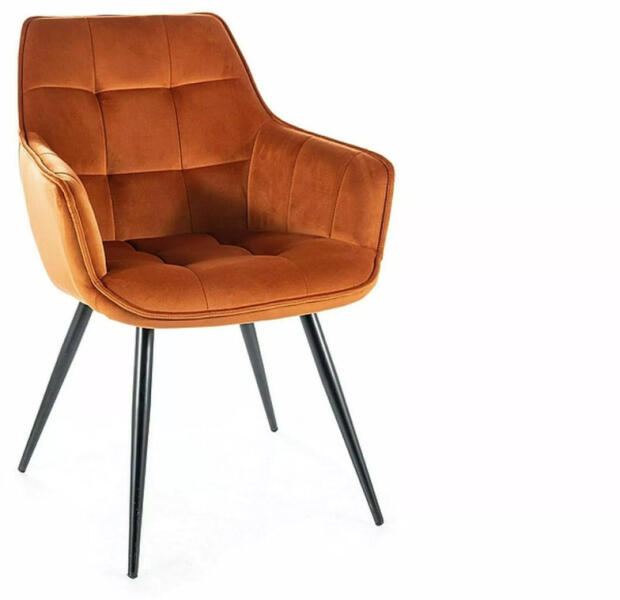 Elegáns és kényelmes bársony étkezőszék steppelt kárpitozással és modern fekete fém lábakkal. A fahéjbarna szín és a puha bársony kárpit tökéletes kombinációja luxus megjelenést kölcsönöz otthonának. Elegáns kényelem modern stílusbanA Lilia Velvet étkezőszék a modern design és a kényelem tökéletes ötvözete. A fahéjbarna bársony kárpitozás puha tapintást