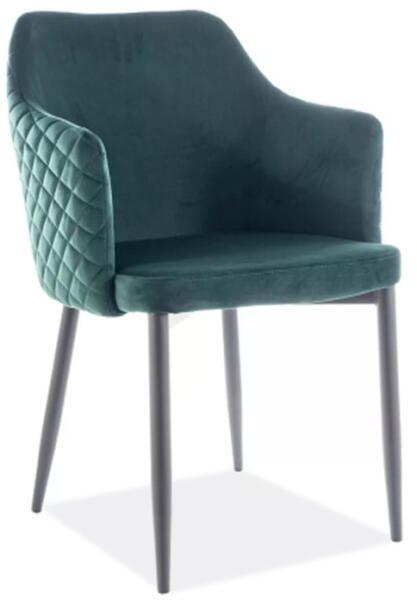 Elegáns Astor bársony étkezőszék rombusz mintás háttámlával, amely tökéletesen ötvözi a kényelmet és a stílust. A zöld bársony kárpitozás és a matt fekete fém váz modern megjelenést kölcsönöz ennek a praktikus bútordarabnak. Elegáns kényelem modern stílusbanAz Astor Velvet étkezőszék a modern design és a klasszikus kényelem tökéletes ötvözete. A szék puha,