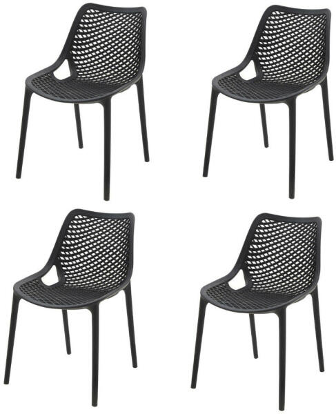 4 darabos Intenso univerzális étkező szék készlet, ami tökéletes választás bel-és kültéri használatra egyaránt. A legújabb lakberendezési trendekkel összhangban, mozgalmas textúra és formavilág jellemzi, ugyanakkor rendkívül ergonómikus üléspozíciót és a test optimális megtámasztását kínálja. Anyaga magas minőségű polipropilén, nagy ellenálló képességgel a