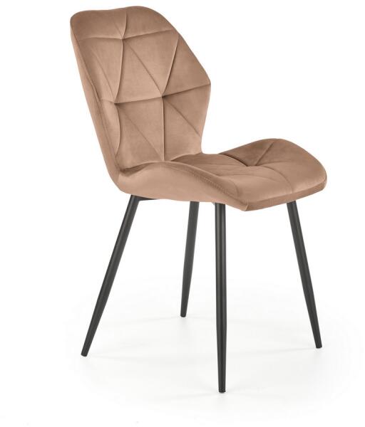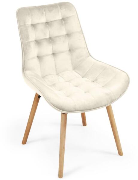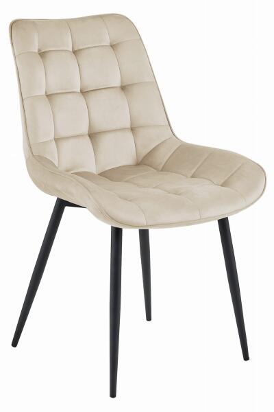 A BERA bézs bársony szék fekete lábakkal az elegancia és a modern dizájn tökéletes kombinációja. Lágy bézs árnyalatú fényűző bársony felülete ellenállhatatlanul kellemesnek tűnik, ugyanakkor kifinomult hangulatot kölcsönöz a térnek. A steppelt ülés és a háttámla hangulatot ad a széknek, és kényelmes ülést biztosít. A fekete fém lábak stabilitást adnak a szék