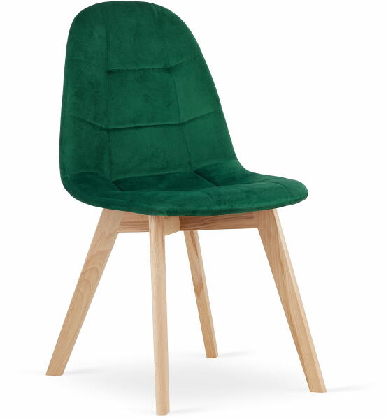 A zöld színű Bora étkezőszék frissességet hoz a belső térbe. Már az első pillantásra megragadja a szék modern kialakítása, mely a minimalizmusra épít. Ezt erősíti nemcsak az egyedi dizájn, hanem elsősorban a zöld bársonyos kárpit , mely valóban kihagyhatatlan. Rendkívül jól mutat az ülés decens steppelése is és a szövet gombos díszítés. Az összképet bükkfa sz
