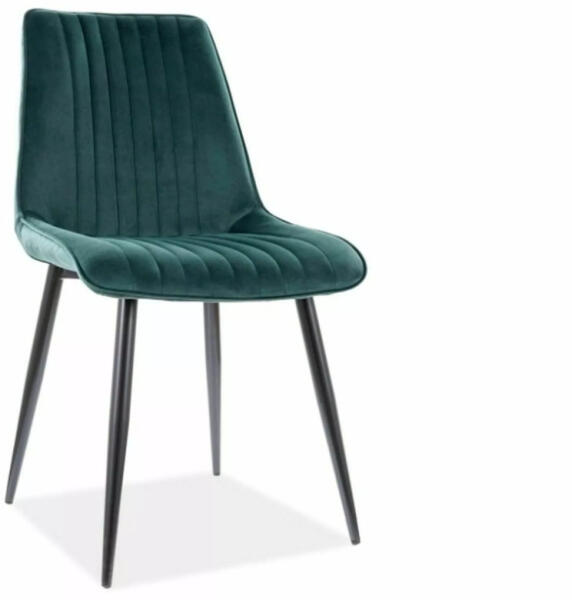 Elegáns, bordázott kialakítású bársony étkezőszék matt fekete fém lábakkal. A zöld bársony kárpitozás és a modern vonalvezetés tökéletes kombinációja luxus megjelenést kölcsönöz. Elegáns kényelem modern stílusbanA Kim Velvet étkezőszék a modern design és a kényelem tökéletes ötvözete. A szék puha, zöld bársony kárpitozással és bordázott háttámlával re