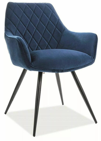 Elegáns, modern étkezőszék luxus bársony kárpitozással és stílusos fekete fémvázas lábakkal. A rombusz mintás háttámla és a kényelmes kartámaszok tökéletes komfortot biztosítanak. Luxus és kényelem modern formábanA Linea Velvet étkezőszék a modern design és a klasszikus kényelem tökéletes ötvözete. A tengerészkék bársony kárpitozás elegáns steppelt mintázatt