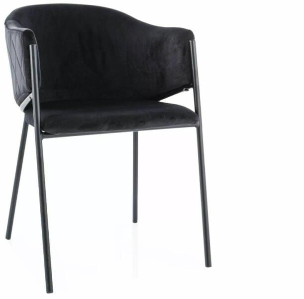 Modern és elegáns Bono étkezőszék fekete bársony kárpitozással és matt fekete fém vázzal. Kényelmes ülést biztosít a 46 cm széles ülőfelülettel és ergonomikus kialakítással. Elegáns kényelem modern dizájnnalA Bono Velvet étkezőszék a modern design és a kényelem tökéletes ötvözete. A fekete bársony kárpitozás puha tapintást és luxus megjelenést kölcsönöz,