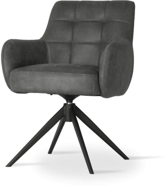 Modern, kényelmes forgószék puha kárpitozással és karfákkal, tökéletes választás otthoni irodába vagy dolgozószobába. A stílusos antracit szövetkárpit és a fekete fém váz elegáns megjelenést kölcsönöz. Kényelem és stílus tökéletes összhangbanA MATERO forgószék a modern design és a funkcionalitás találkozása. Az antracit színű, puha kárpitozású ülés és h