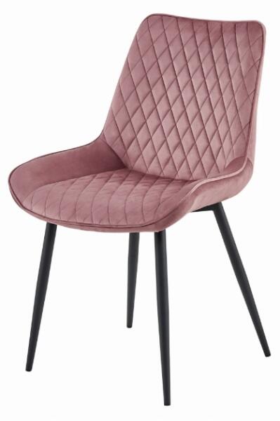 Az elegáns rózsaszín bársony szék VERDO nemcsak luxus megjelenésével, hanem kényelmével is kitűnik. A steppelt kialakítású bársonyhuzat egyedi varázst kölcsönöz a széknek, a fekete fém lábak pedig stabilitást és modern tapintást biztosítanak. Ez a szék ideális választás azok számára, akik stílust és kényelmet szeretnének hozni otthonukba, akár az étkező asztal