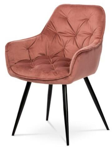 Gyönyörű étkezőszék vintage pink színben. Lábai fekete fémből készültek, melyeket padlóvédő műanyag kupakkal láttak el.