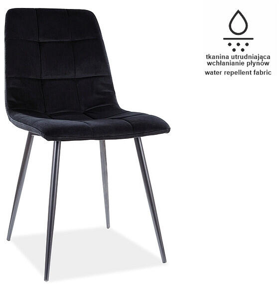 Elegáns Matt Bársony étkezőszék vízlepergető szövettel és matt fekete fém lábakkal. A kényelmes, párnázott kialakítás és a modern dizájn tökéletes választássá teszi étkezőjébe vagy dolgozószobájába. Elegáns és praktikus bársony étkezőszék vízlepergető tulajdonsággalA Mila Matt Velvet étkezőszék a modern design és a praktikusság tökéletes ötvözete. A s