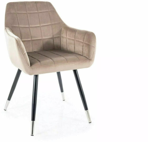 Luxus és kényelem modern formában A Nuxe Velvet étkezőszék a modern design és a klasszikus kényelem tökéletes ötvözete. A szék steppelt bársony kárpitozása sötétbézs színben pompázik, ami elegáns megjelenést kölcsönöz. A fekete matt fém lábak króm díszítéssel és a karfás kialakítás tovább fokozzák a szék prémium megjelenését. A szék 83 cm magas, 56 cm sz