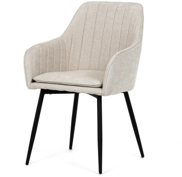 Az Mobiliamo stílusos étkezőszéke lenyűgözi a modern ipari formatervezést, amely tökéletesen illeszkedik bármilyen belső térbe. Bézs szövettel van kárpitozva, ami nem csak tartós, de kellemes tapintású is. Az ülés közbeni kényelemről a kényelmes karfák és a puha hab párnázás gondoskodik. A tömör fekete fémszerkezet kerek profillábakkal stabilitást és elegáns meg