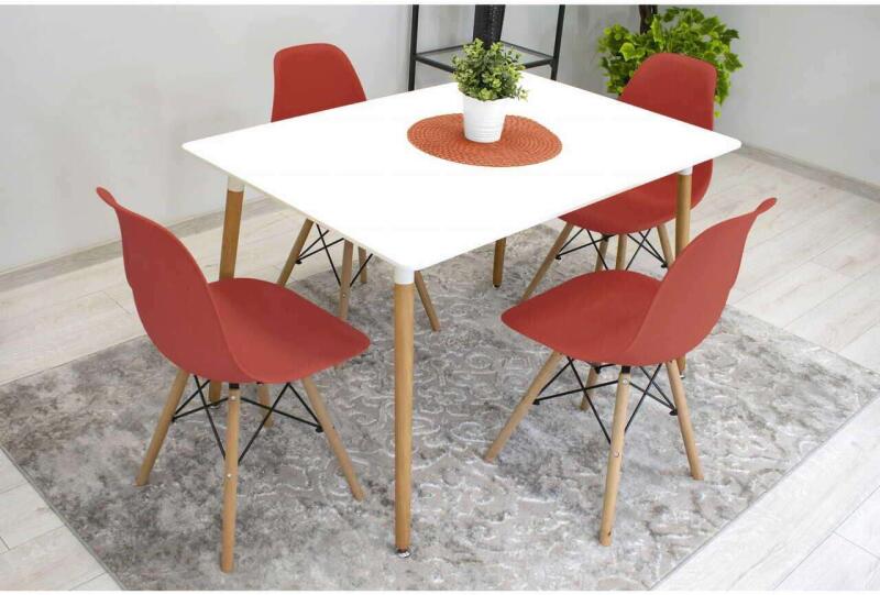 4 db skandináv stílusú szék, Artool, Osaka, PP, fa, cinóbervörös, 46x54x81 cm Tulajdonságok:Ez a székmodell a kényelmet egyedi dizájnnal és nagyszerű megjelenéssel ötvözi. Tökéletesen illeszkedik a csillogó, modern vagy klasszikus stílusokhoz, és alkalmas irodába, nappaliba, konyhába vagy teraszra. A bükkfából készült lábak biztosítják a stabilitást és a tartóssá