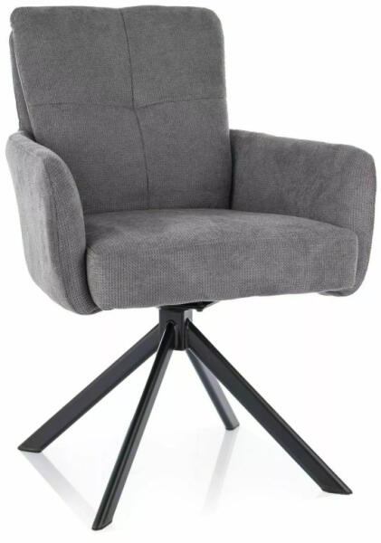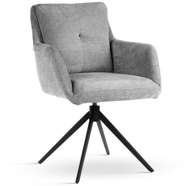 Modern, kényelmes forgószék puha kárpitozással és stílusos fekete csillag alakú lábbal. Tökéletes választás dolgozószobába vagy étkezőbe, egyesíti a funkcionalitást és az elegáns megjelenést. Elegáns kényelem modern dizájnnalA Monica forgószék a modern otthonok tökéletes kiegészítője. A szék szürke kárpitozása és fekete fém váza harmonikus kontrasztot alkot.