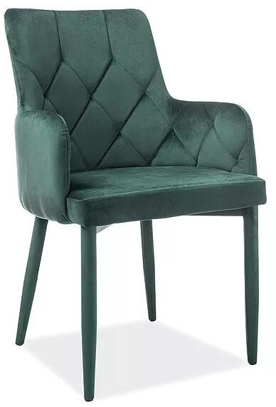Elegáns, steppelt kárpitozású étkezőszék zöld bársony huzattal és harmonizáló fém vázzal. A kényelmes ülőfelület és a modern dizájn tökéletes választássá teszi étkezőjébe vagy dolgozószobájába. Elegáns kényelem modern stílusbanA Ricardo Velvet étkezőszék a modern design és a klasszikus kényelem tökéletes ötvözete. A szék steppelt háttámlája és ülőf