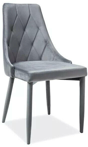 Elegáns kényelem modern stílusban A Trix Velvet étkezőszék a modern design és a kényelem tökéletes ötvözete. A szék különleges, rombusz mintázatú kárpitozással rendelkezik, amely prémium szürke bársony anyagból készült. A 89 cm magas háttámla és a 48 cm-es ülésmagasság optimális támasztékot biztosít. A fém váz szintén szürke színben harmonizál a kárpitozá