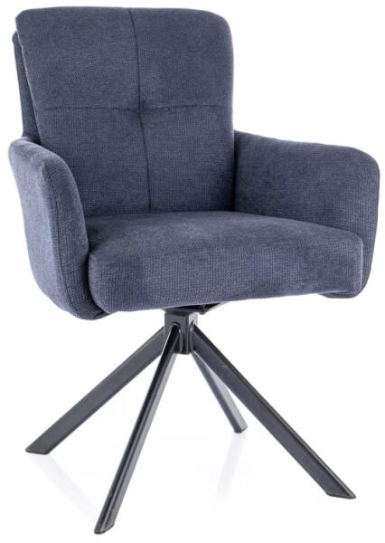 Modern forgószék kényelmes zsebrugós üléssel és automatikus visszatérési funkcióval. A tintakék Vardo szövet kárpitozás és matt fekete fém váz elegáns kombinációja tökéletes választás az étkezőbe. Modern kényelem és stílus találkozásaA Basil Vardo forgószék a modern étkezők tökéletes kiegészítője. A szék elegáns tintakék Vardo szövettel van kárpitozva,
