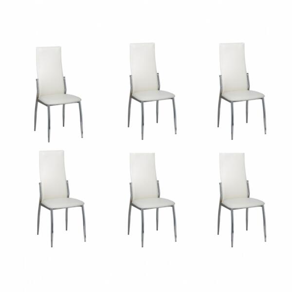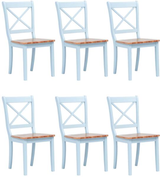 6 db fehér és natúr színű tömör gumifa étkezőszék Ez az egyszerű, mégis elegáns dizájnú, fából készült étkezőszék szett 6 darabból áll, és nagyszerű kiegészítője lehet étkezőjének vagy konyhájának. A székek tömör gumifából készültek, így nagyon stabilak és tartósak. Polírozott, festett és lakkozott felületüknek köszönhetően a székek könnyen tisz