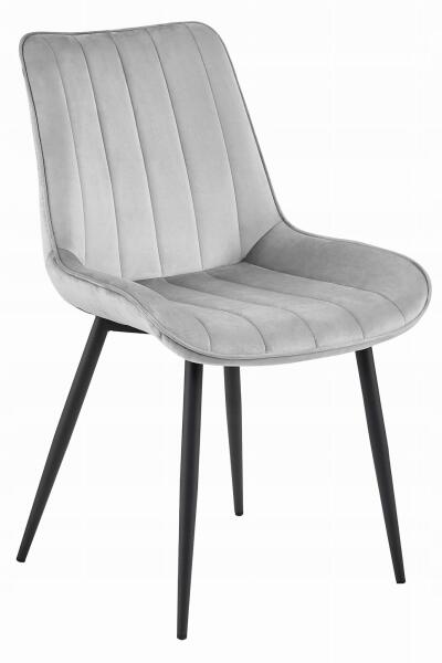 A SOSA világosszürke bársony szék fekete lábakkal az elegancia és a modern dizájn tökéletes kombinációja. Fényűző szürke bársony felülete ellenállhatatlanul kellemesnek tűnik, ugyanakkor kifinomult hangulatot kölcsönöz a térnek. A háttámlán található függőleges varrás kiemeli a szék elegáns vonalait, és egy csipetnyi hangulatot kölcsönöz neki. A fekete fémláb