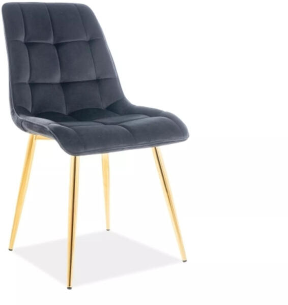 Elegáns bársony étkezőszék steppelt kárpitozással és arany színű fém lábakkal. Tökéletes választás a modern étkezőbe, maximális kényelmet és stílusos megjelenést biztosít. Luxus és kényelem találkozása modern kivitelbenA Chic Elegance étkezőszék a modern design és a klasszikus kényelem tökéletes ötvözete. A fekete bársony kárpitozás és az arany színű fém