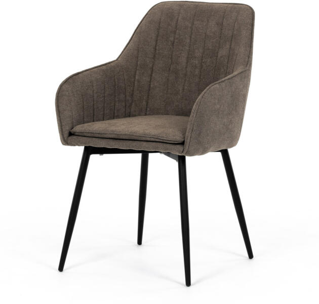 Az Mobiliamo stílusos étkezőszéke lenyűgözi a modern ipari formatervezést, amely tökéletesen illeszkedik bármilyen belső térbe. Vintage barna szövettel van kárpitozva, ami nem csak tartós, de kellemes tapintású is. Az ülés közbeni kényelemről a kényelmes karfák és a puha hab párnázás gondoskodik. A tömör fekete fémszerkezet kerek profillábakkal stabilitást és eleg