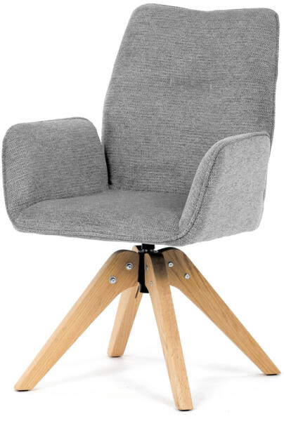 Stílusos Autronic étkezőszék modern dizájnnal, amely egyesíti a kényelmet és az eleganciát. Kényelmes ülése és háttámlája kellemes világosszürke árnyalatú, vízálló szövettel van kárpitozva, így minden belső térbe remek kiegészítője lehet. A természetes színű tömör fa lábak stabilitást és tartósságot biztosítanak a széknek, míg a 360°-ban elforgatható m