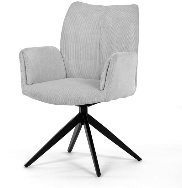 Modern étkezőszék 180 fokos forgó funkcióval és automatikus visszatérítő mechanizmussal. A Vardo szövet kárpitozás és matt fekete fémváz tökéletes kombinációja kényelmet és stílust kínál. Elegáns és kényelmes forgószék auto-return funkcióvalA Capri Vardo étkezőszék a modern design és a funkcionalitás tökéletes ötvözete. A szék sötét bézs Vardo szövettel