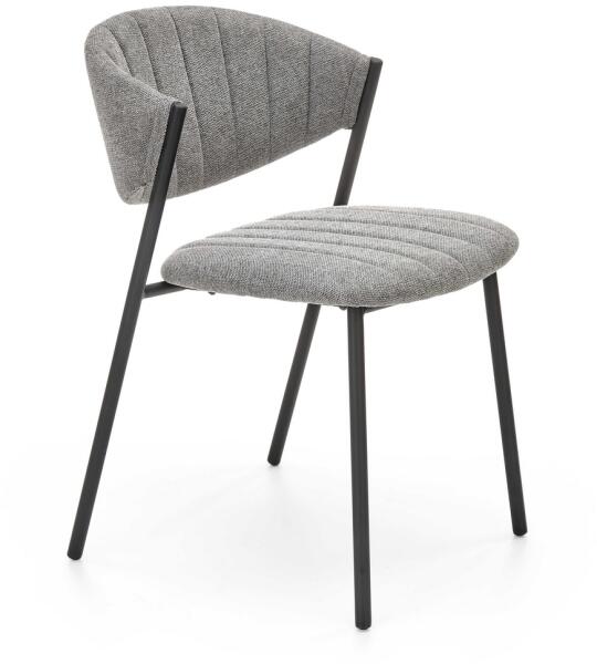 Kalani étkezőszék A Kalani egy modern étkezőszék, egyszerű, de praktikus kialakítással. A háttámla és az ülés szövettel kárpitozott, hogy kényelmesen ülhessen, míg a fém talp biztosítja a stabilitást. Három Kalani szék a belső térben