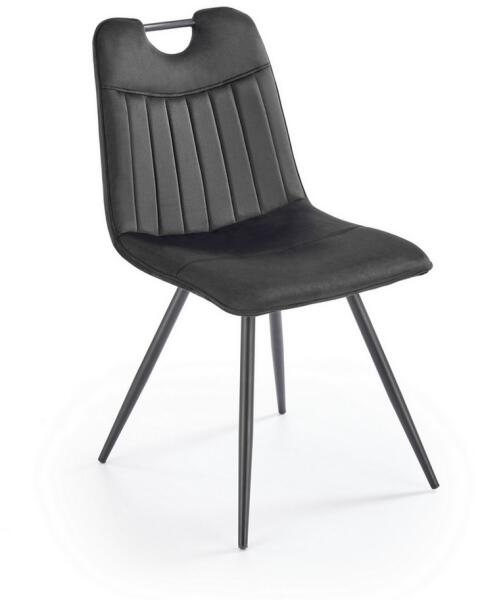 Irys Velvet étkezőszékIrys Velvet étkezőszék Az Irys Velvet étkezőszék dizájntartozék minden helyiségbe. Az ülés finom bársony szövettel van kárpitozva. Kellemes tapintású, és a párnázattal együtt kényelmes ülést biztosít. A szék stílusos kiegészítője a steppelt háttámla rombuszokban, amelyek eleganciát kölcsönöznek az egész helyiségnek. A fém talp stabil,