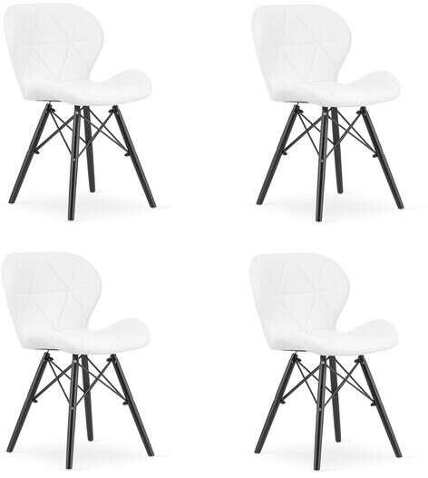 4 db skandináv stílusú szék, Mercaton, Lago, eco bőr, fa, fehér és fekete, 47.5x52x74 cm Tulajdonságok: A design tökéletesen illeszkedik egy modern, klasszikus vagy glamour környezetbe. Biztosan megtalálja a helyét egy nappaliban, irodában vagy stúdióban, esetleg még a konyhában is. A bükkfából készült széklábak stabilitást és nagy tartósságot biztosítanak . A környe