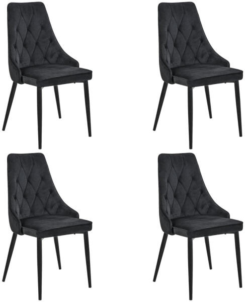 Elegáns, steppelt kárpitozású étkezőszék szett fekete bársony huzattal és fém lábakkal. A modern dizájn és a kényelmes kialakítás tökéletes választássá teszi éttermekbe és otthoni étkezőkbe egyaránt. Luxus és kényelem modern köntösbenAz AKORD SJ. 054 étkezőszék kollekció a modern eleganciát ötvözi a praktikus kialakítással. A fekete bársony kárpitozás és