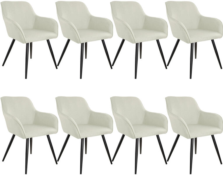 Varázsoljon otthonába ízléses légkört az elegáns Marylin vászon kinézetű székekkel a tectaketől. A háttámla és a kartámaszok finoman lekerekítettek, és tökéletesen megformált alakot alkotnak. A kényelmes és puha kárpitozás szinte azonnal pihenésre csábítja. Négy láb és a kör alakú keret masszív acélból, fekete színben kiegészíti a sokoldalú szék csábító