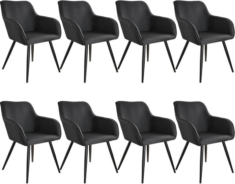 Varázsoljon otthonába ízléses légkört az elegáns Marylin vászon kinézetű székekkel a tectaketől. A háttámla és a kartámaszok finoman lekerekítettek, és tökéletesen megformált alakot alkotnak. A kényelmes és puha kárpitozás szinte azonnal pihenésre csábítja. Négy láb és a kör alakú keret masszív acélból, fekete színben kiegészíti a sokoldalú szék csábító