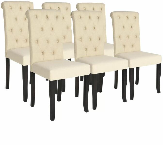 6 db sötétszürke szövet étkezőszék Ez a tömör fából készült étkezőszék szett elegáns és időtlen megjelenéssel bír, így nappalija vagy konyhája kiváló kiegészítője lehet. A pihe-puha szövet kárpitnak és a hab bélésnek köszönhetően a székek rendkívül kényelmesek. A háttámlát díszítő gombok kiemelik a klasszikus megjelenést. A küldemény 6 db étkezősz