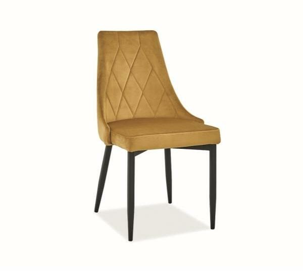 Trix III bársony étkezőszék Minden modern berendezésű étkezőben találhatók hozzá illő székek. A Trix III Velvet étkezőszék megjelenése az otthoni bútorok legújabb trendjei szerint készült. A széket egy kellemes anyag borítja, amely egy kis pazarságot kölcsönöz neki. A puha anyagnak és a párnázásnak köszönhetően kényelmes a széken ülni az ebédszünetben. A talp