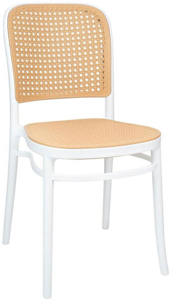 A Wicky szék elegáns rattan hatású kialakítással és időtlen dizájnnal rendelkezik. A fehér polipropilén váz és a természetes hatású ülőfelület tökéletes kombinációja modern és klasszikus stílusban, amely egyszerre praktikus és dekoratív. Elegáns és praktikus kerti stílusú szék modern otthonokbaA Wicky szék ötvözi a klasszikus kerti bútor megjelenését a modern