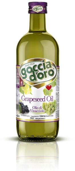 A szőlőmag-olajat apró vetőmagok sajtolásával nyerik a szőlőbogyókból (Vitis Vinifera), és minden bogyó olajat, ásványi anyagokat, vitaminokat és természetes antioxidánsokat tartalmaz. 1000 ml-es szőlőmag olaj; Goccia d'oro termék sütéshez, főzéshez, saláták készítéséhez.
