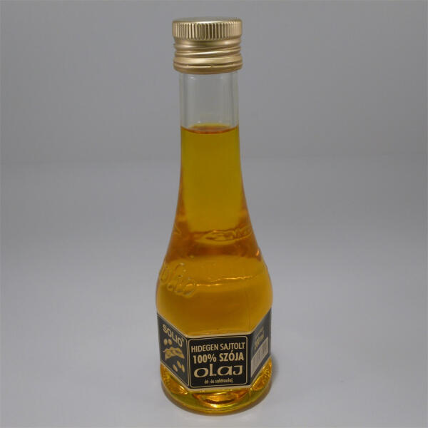 Solio szója olaj 200 ml SOLIO SZÓJA OLAJ HIDEGEN SAJTOLT A szójaolaj zsírsavösszetétele, a telített és a telítetlen zsírsavak aránya igen kedvező. A legfontosabb növényi esszenciális zsírsavforrás egyike, mert nem csak n-6, hanem n-3 zsírsavakat is tartalmaz. A szójaolaj a margaringyártás alapanyaga. Számos növényben, sok hüvelyesben, így a szójában is, nagy mennyiségb