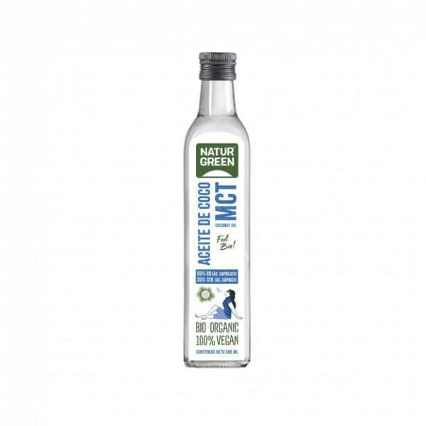 Naturgreen Bio Szűz kókuszolaj MCT 500 ml Összetevők : 100% bio MCT kókuszolajA termék olyan létesítményben készült, ahol szóját, szárított gyümölcsöket és szezámolajat is feldolgoznak! Átlagos tápérték 100g termékben: Energia: 3700 kJ/900 kcal; Zsír: 100g; amelyben telített zsírsavak: 99,9g; Szénhidrát: 0g; amelyből cukrok: 0g; Rost: 0g; Fehérje: 0g; Só: 0g